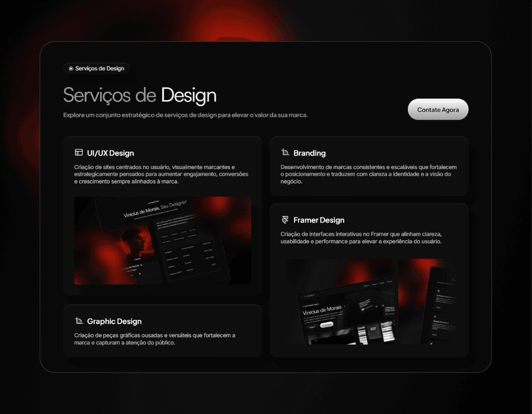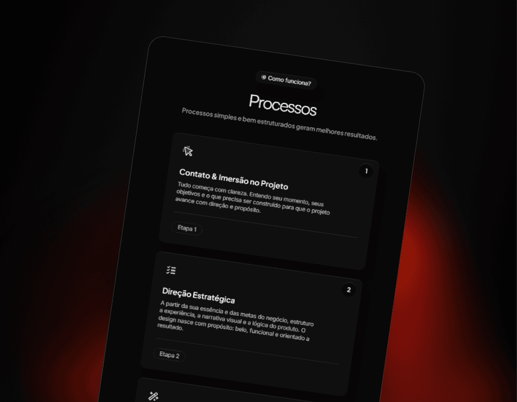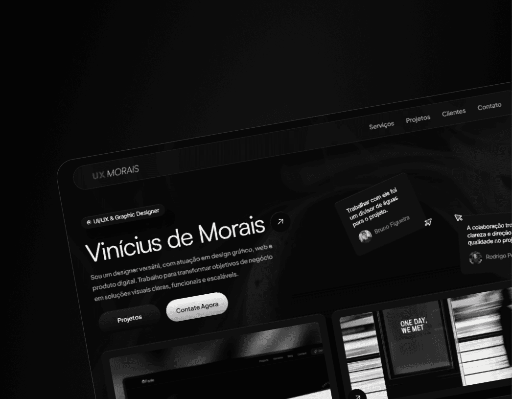 Desenvolver um portfólio pessoal capaz de apresentar habilidades em UI/UX e design visual de forma clara, profissional e memorável. O foco foi criar uma experiência digital que transmitisse domínio técnico, consistência estética e posicionamento como designer voltado a produtos digitais.